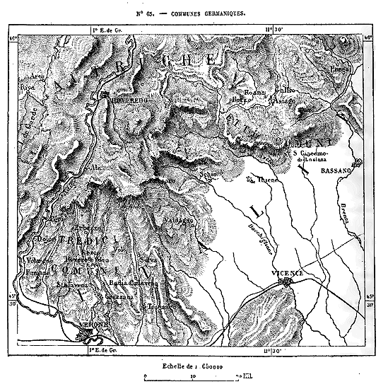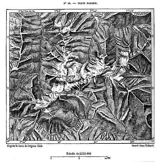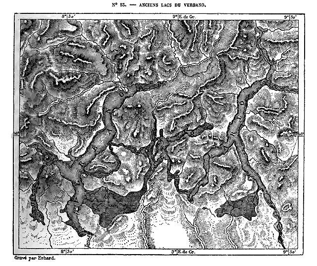 Le système des Alpes, qui doit probablement son vieux nom celtique à la blancheur de ses hautes cimes neigeuses, se développe en une immense courbe de plus de 1,000 kilomètres, des rivages de la Méditerranée au bassin du Danube. Il se compose, en réalité, d'une trentaine de massifs formant autant de groupes géologiques distincts, mais reliés les uns aux autres par des seuils très-élevés; ses roches, qu'elles soient de granit, d'ardoise, de grès ou de calcaires, se maintiennent au-dessus des plaines basses en un rempart continu. Dans les âges antérieurs, les Alpes furent beaucoup plus hautes, ainsi qu'a permis de le constater l'étude des éboulis et des strates à demi détruites par les agents naturels; mais, tout dégradées qu'elles soient, elles élèvent encore des centaines de cimes dans la région des neiges persistantes, et de grands fleuves de glaces s'épanchent de toutes ses hautes crêtes dans les vallées supérieures. Des campagnes du Piémont et de la Lombardie, les glaciers et les névés apparaissent comme un diadème étincelant enroulé sur le sommet des monts.