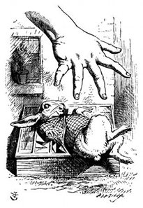 E si guardò le mani, e si meravigliò vedendo che mentre parlava fra sè stessa aveva infilato uno de' guanti bianchi che il Coniglio avea lasciati cadere. "Come mai ho potuto far ciò?" disse. "Forse sono ridiventata piccina."