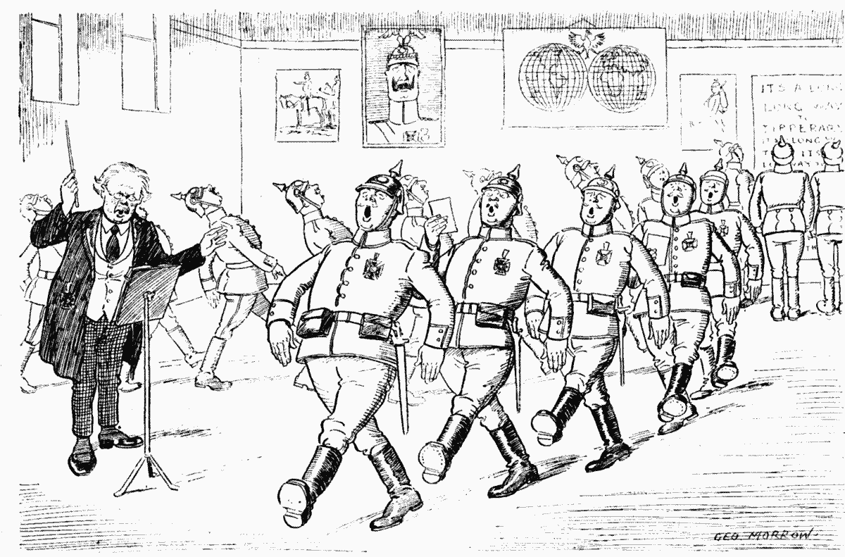 "The Kaiser!" cried Jenkins. "Have him with mailed fists holding up a torn scrap of paper."