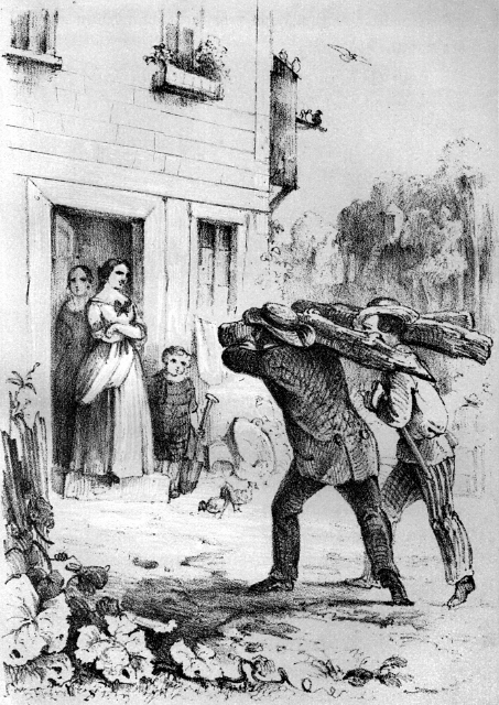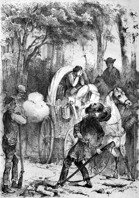 Gerade als sie abfahren wollten kroch die alte Frau aus ihrem Winkel vor, und nickte ihnen freundlich aber mit etwas stumpfsinnigem Lächeln nach, und Rebecca stand in der Thür und winkte ihnen ein Lebewohl und eine glückliche Fahrt durch den Wald zu.