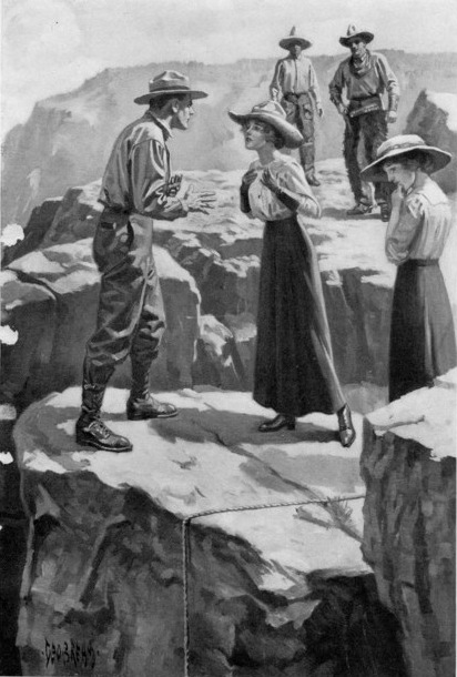 He rose to his feet and walked down to a ledge on the brink of the precipice with an air of bravado. But when he looked over into the chasm, he quickly shrank back and crouched on his hands and knees. Before again peering over he stretched himself out flat on the level ledge and grasped an out-jutting point of rock.