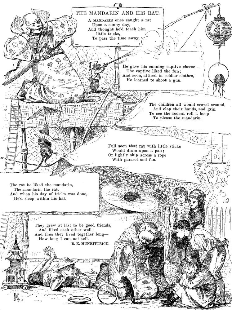 All the long bright forenoon they worked about their water-power, putting up an extensive mill of stones and sticks, and having no trouble at all, except when Ted got tired of being called "Co.," and insisted on being Mr. Brown a part of the time at least, in spite of Kitty's argument that the youngest ought always to be Co.[Pg 683]