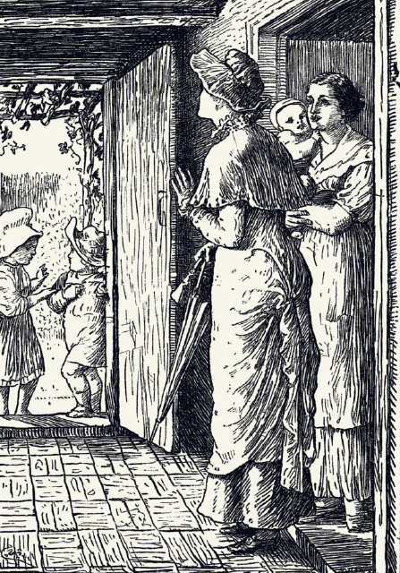 "Ach, Herr Baby, mine child, why you not say when you come?" Lisa cried out. Lisa was Baby's nurse. Her face was rosy and round, and she looked very kind. She would have liked to pick him up to make sure he had got no knocks, but she knew too well that would not do. So all she could do was to say again—