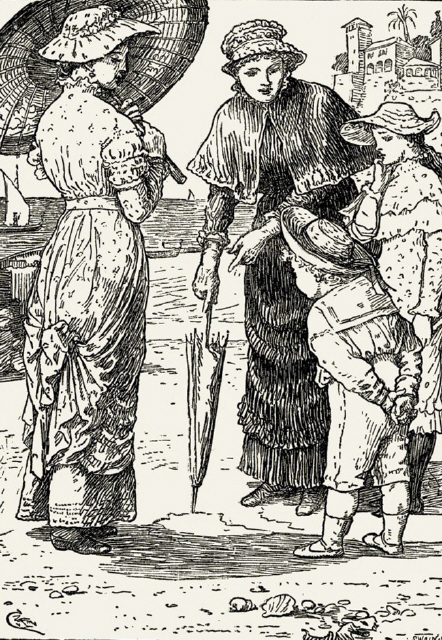 And his mind went back to the biggest boat he had ever seen, which was in the toy-shop at Brookton, when he had gone with his mother to be fitted for new boots. But even that wouldn't be big enough. Mother, and auntie, and grandfather, and Celia, and Fritz, and Denny, and cook, and Lisa, and Thomas and Jones, and the other servants, and the horses, and—and—— Baby stopped to take breath inside, for though he had not been speaking aloud he felt quite choked with all the names coming so fast. "And pussy, and the calanies, and the Bully, and Fritz's dormice, oh no, them couldn't all get in." Perhaps if Baby doubled up his legs underneath he might squeeze himself in, but that would be no good, he couldn't go sailing, sailing all over the sea by himself, like the old woman in "Harry's Nursery Songs," who went sailing, sailing, up in a basket, "seventy times as high as the moon." Oh no, even that boat wouldn't be big enough. They must have one as big as—and Baby stopped to look round. But just then a shout from inside the nursery made him wake up, for he had got to the last little stair before the top landing, and again right foot and half Baby, followed by left foot and the other half Baby, stumped on their way.