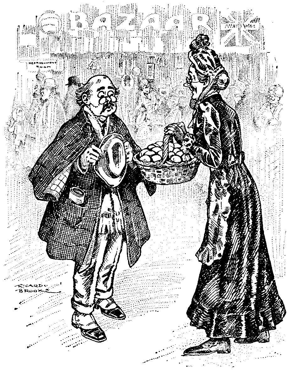 Devoted Stall-holder. "I hardly like to ask you, Mr. Thrush, but the Committee would be so grateful if you would write one of your sweet verses on each of these eggs for wounded soldiers!"