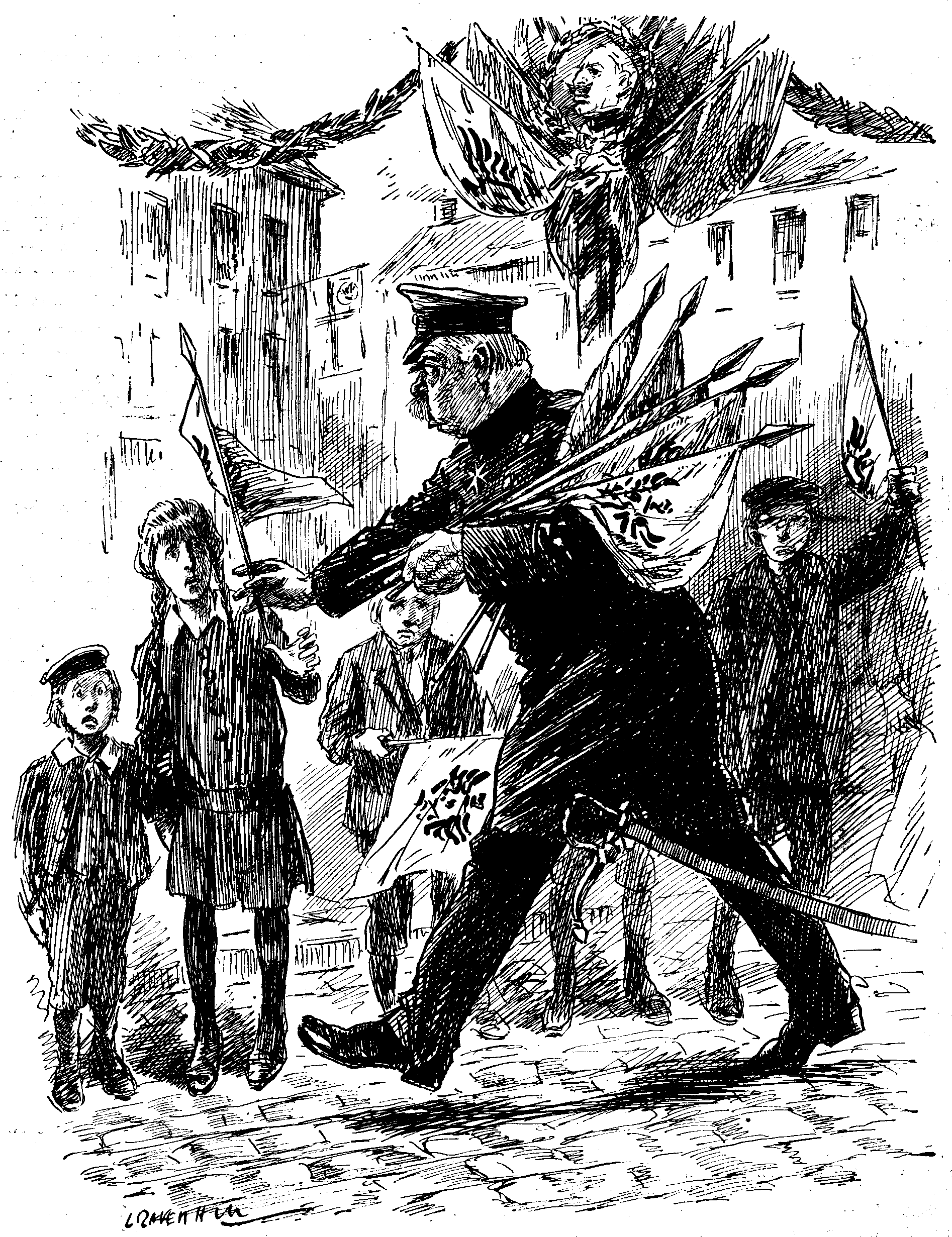 Then followed a frantic postscript. "I know now! They've dressed poor Tony up in a little khaki uniform that doesn't even fit him! And, what's worse, they've put up a perfectly terrible triumphal arch over the front gate, with 'Hail to our Hero' on it in immense letters. They all seem so pleased with themselves—and anyway there's no time to alter anything now. But I don't know what Jack will say."