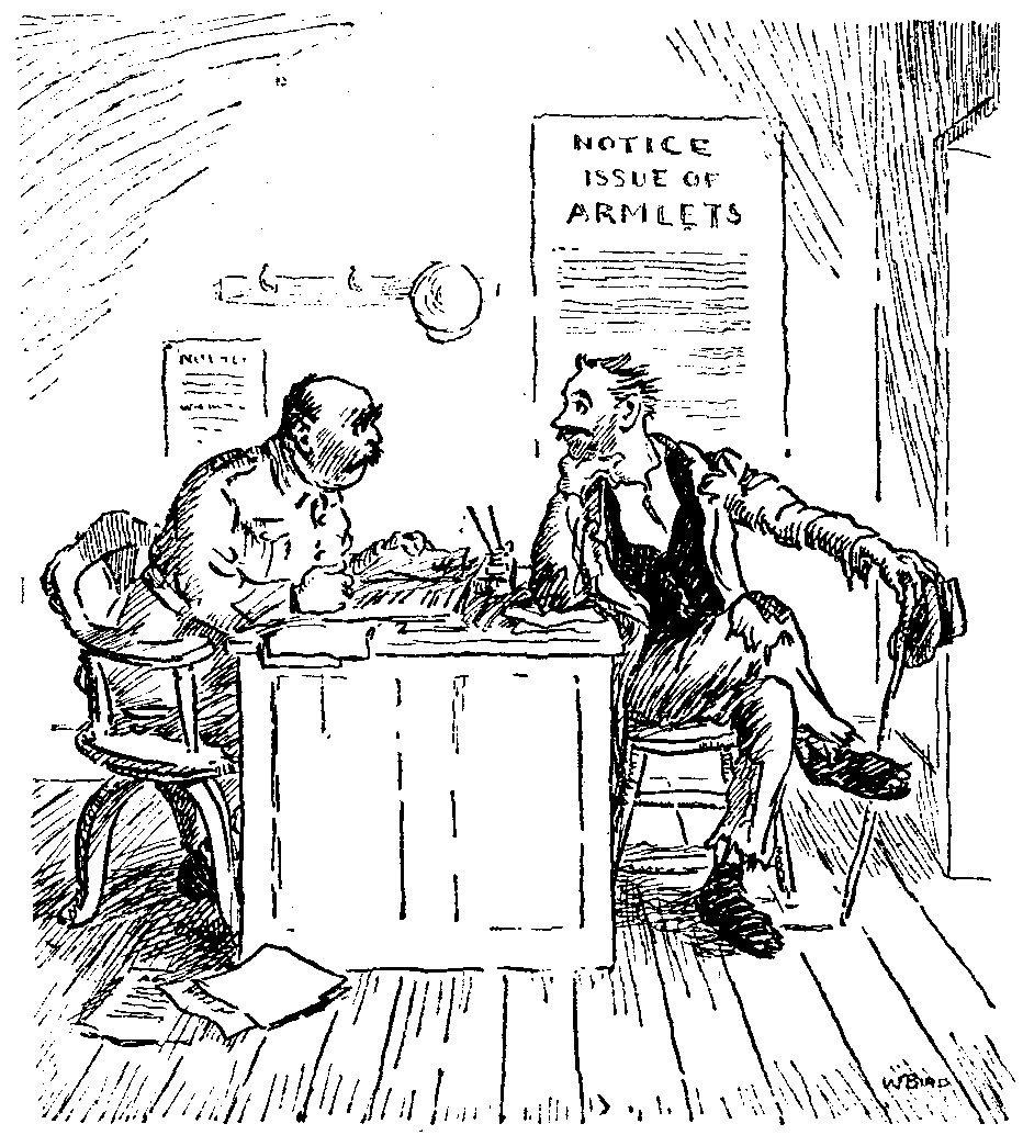 Ted (ex-plumber). "Wy, I'm goin' back for me baynet, o' course."