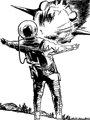He smiled at her affectionately. She was a man's woman, was Martha—always had been, still was. He had married her the year he had gone to space—a lissome, wistful, old-fashioned lass, with big violet eyes and gentle hands and gentle thoughts—and she had never complained about the long and lonely weeks between blast-off and glide-down, when most spacers' wives listened to the psychiatrists and soap-operas and soon developed the symptoms that were expected of them, either because the symptoms were chic, or because they felt they should do something to earn the pity that was extended to them. "It's not so bad," Martha had assured him. "The house keeps me busy till Nora's home from school, and then there's a flock of kids around till dinner. Nights are a little empty, but if there's a moon, I can always go out on the porch and look at it and know where you are. And Nora gets out the telescope you built her, and we make a game of it. 'Seeing if Daddy's still at the office,' she calls it."