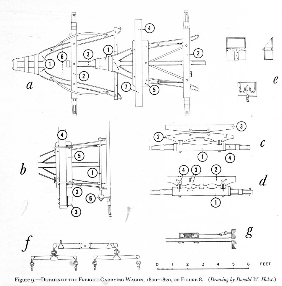 [Figure 9.—Details of the Freight-Carrying Wagon, 1800-1820, of Figure 8. (Drawing by Donald W. Holst.)]