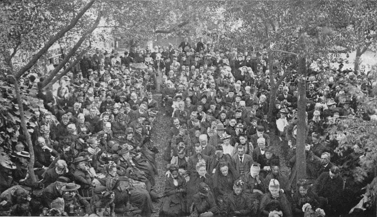 When entering the grounds, notice the "bridle-post" at the left of the gate, and a massive boulder in which rude steps are cut for mounting a horse led up to its side:—