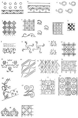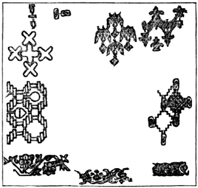 | Ancestry of patterns—Classification—Their historical value—Primitive patterns—The wave—Tartan—Prehistoric African patterns—The naturalistic—Flowers—Shells—Indian forms of naturalistic patterns—Egyptian—The lotus—Sunflower—Celtic Zoomorphic patterns—The human figure on Greek textiles—Animal forms in Oriental patterns—Symbolical and conventional patterns—The wave patterns—The palm leaf—The cone—Gothic—Arab—Moresque—The Sacred Hom—Egg and tongue—The cross—Swastika—Fylfote—Gammadion—The [Pg xiv] crenelated pattern—The Ninevite daisy—Emblematic patterns—Bestiaria—Volucraria—Lapidaria—Byzantine patterns—Gothic—Renaissance—The cloud pattern—The fundata—Italian—French patterns—Radiated patterns—The shell—Patterns by repetition—Balcony pattern—Chinese wicker-work—Survival of a pattern—Opus Alexandrinum—Quilting patterns | 82 | |
