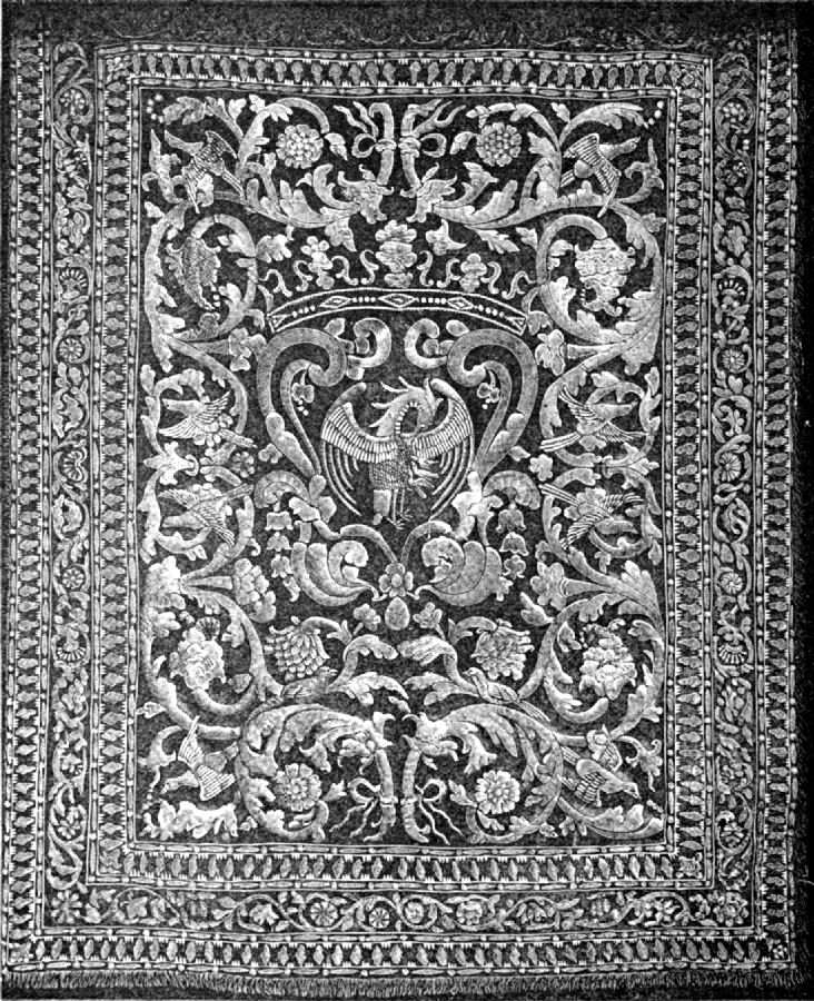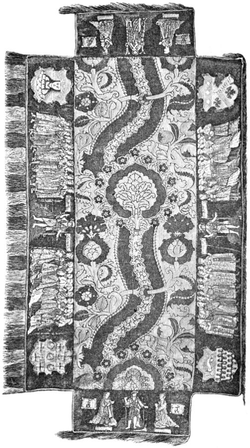 I confess that when I undertook this task, I did not anticipate the time I have had to spend in collecting and epitomizing the many notices to be found in German, French, and English authors, on what has been considered among us, at least in this century, as merely a secondary art, and therefore, as such, of little importance. Cursory notices of needlework are scattered through almost every book on art; and under the head of textiles it is usual to find embroidery acknowledged as being worthy of notice, though not to be named in company with sculpture, architecture, or painting, however beautifully or thoughtfully its works may be carried out. I have tried to show that it deserves higher estimation.