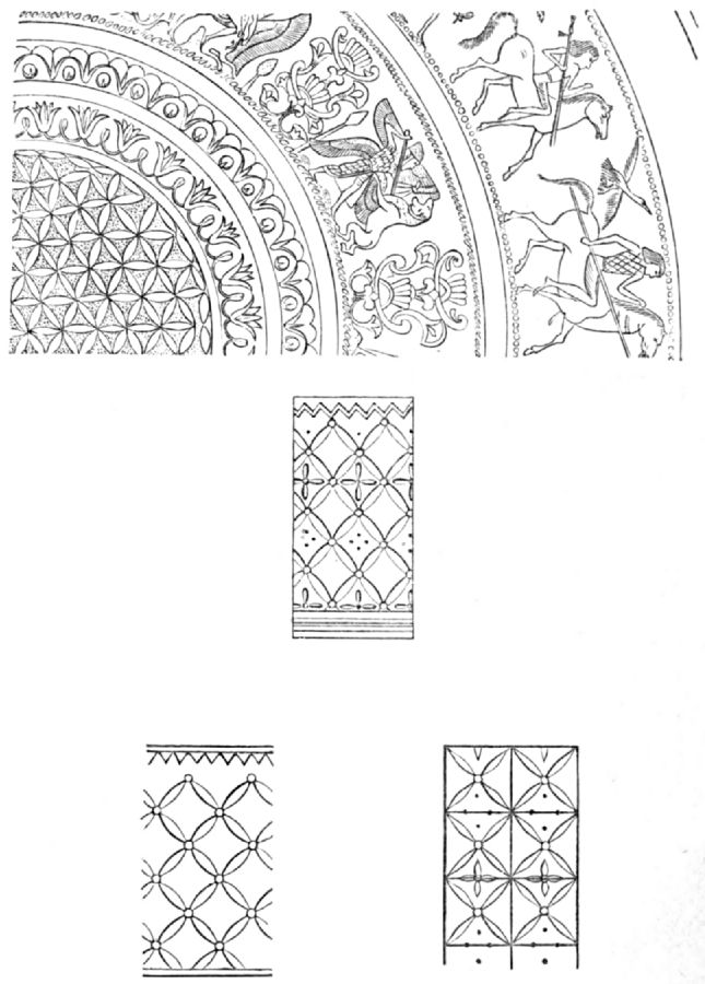 | Classical hangings—Babylonian and Persian—Semper’s theory—Sanctuary in the wilderness—St. Peter’s at Rome—Abulfeda—Akbar’s tent—Nadir Shah’s tent—Tent of Khan of Persia—Tents [Pg xvi] of Alexander the Great at Alexandria—Roman hangings—Funeral pyres—Kosroes’ tent—Semper’s rules for hanging decorations—Ancient carpets—English and French hangings—Rules for designs of hangings | 260 | |
