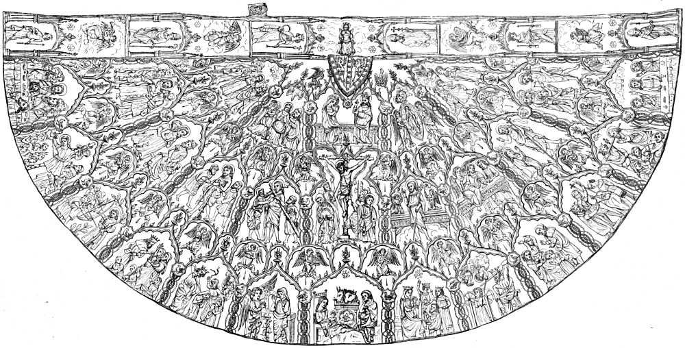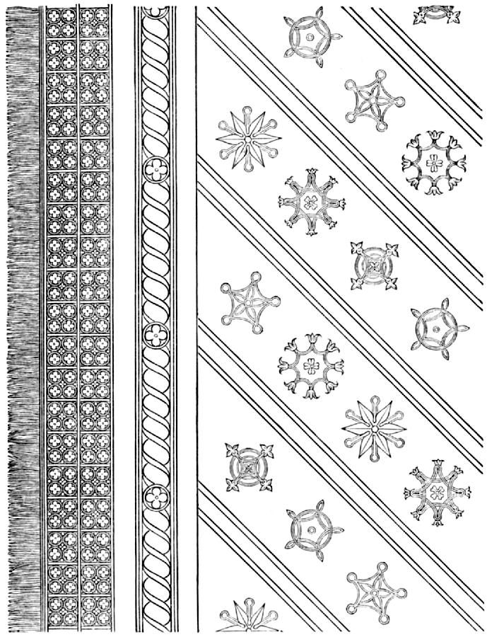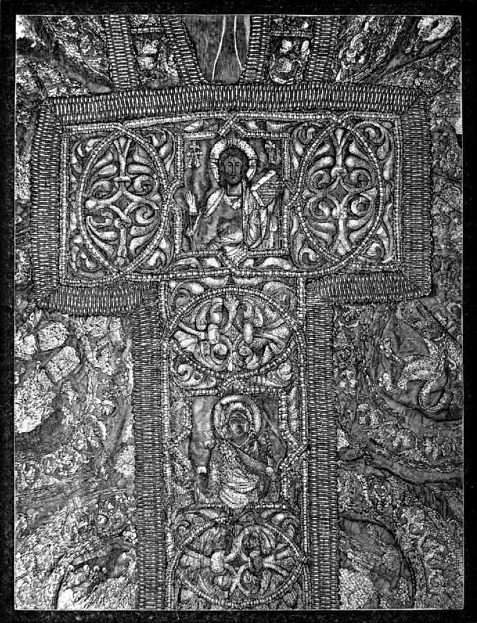 | Christian art—Dark ages—Greek and Roman ecclesiastical dress—Northern influence—Continuity of ecclesiastical art—Authorities—Anglo-Saxon orthodox colours—Veils of the Temple—Hangings in Pagan temples and Christian churches—Russian use of veils—Art in the early Church—Rare examples—Destruction by the iconoclasts—Early embroiderers—Empress Helena—Bertha, mother of Charlemagne—His dalmatic—Pluvial of St. Silvester—Pluvial of museum at Bologna—Daroca cope—Cope of Boniface VIII.—Style of the twelfth century—Mantle of St. Stephen of Hungary—Kunigunda’s work for Henry II.—The Romanesque—Movement perfecting Gothic art, thirteenth century—Opus Anglicanum—Syon cope—Embroidery on the stamp—Pictures in flat stitches—Flemish work—Renaissance—Work of some royal ladies—French—Spanish—Sicilian and Neapolitan—German work—Sacred symbolism—Melito’s “The Key”—Mystical colours—Prehistoric cross—Many forms of the cross—The roës—The chrysoclavus—Modern decoration—Principles and motives for church embroideries—The altar-cloth—The reredos—The pulpit and reading-desk—The ancient Paschal—The banner of St. Cuthbert—The fringe—Lay heraldry of the Church—South Kensington Museum | 303 | |