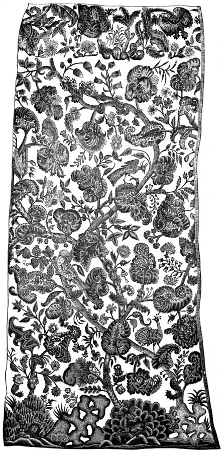 | First glimpse of art in England—Dyeing and weaving in Britain in early times—Cæsar’s invasion—Roman civilization—Anglo-Saxon times and art—Adhelme’s poem—Icelandic Sagas—Saga or story of Thorgunna—English work in the eighth century—The Benedictines—Durham embroideries—Aelfled—St. Dunstan—Queen Emma’s work—William of Poitou—The Bayeux tapestry—Abbess of Markgate—Gifts to Pope Adrian IV.—Robes of Thomas à Becket at Sens—Innocent III.—English pre-eminence in needlework from the Conquest to the Reformation—John Garland on hand-looms—Blode-bendes and lacs d’amour—Opus Anglicanum—English peculiarities in ecclesiastical design—Penalties against luxury in dress—Protection the bane of art—Dunstable pall—Stoneyhurst cope—Destruction of fine works at the Reformation—Much on the Continent, much collected in our old Catholic houses—Field of the Cloth of Gold—Mary Tudor’s Spanish stitches—Queen Elizabeth’s embroideries—Institution of Embroiderers’ Company—East India Company—Oriental taste discouraged on Protectionist grounds—Decay of the art in England—Style of James I.—Dutch style—Cushion stitches—Miss Linwood—Miss Moritt—Mrs. Delany—Mrs. Pawsey—Postscript—Revival of the art of needlework—“Royal School of Art Needlework” | 356 | |