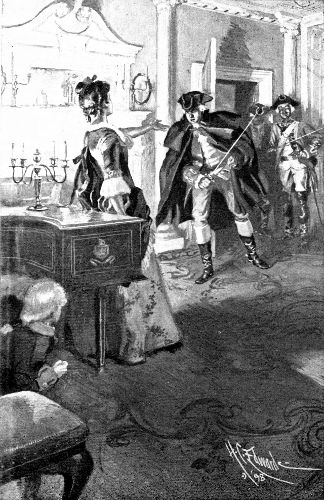 He was a handsome young man, Major John Colden, being not more than twenty-seven years old, and having the clearly outlined features best suited to that period of smooth-shaven faces. His dark eyes and his pensive expression were none the less effective for the white powder on his cued hair. A slightly petulant, uneasy look rather added to his countenance. He was of medium height and regular figure. He wore a civilian’s cloak or outer coat over the uniform of his rank and corps, thus hiding also his sword and pistol. Other externals of his attire were riding-boots, gloves, and a three-cornered hat without a military cockade. He was mounted on a sorrel horse a little darker in hue than the animal ridden by Miss Elizabeth’s black boy, Cuff, who wore the rich livery of the Philipses.