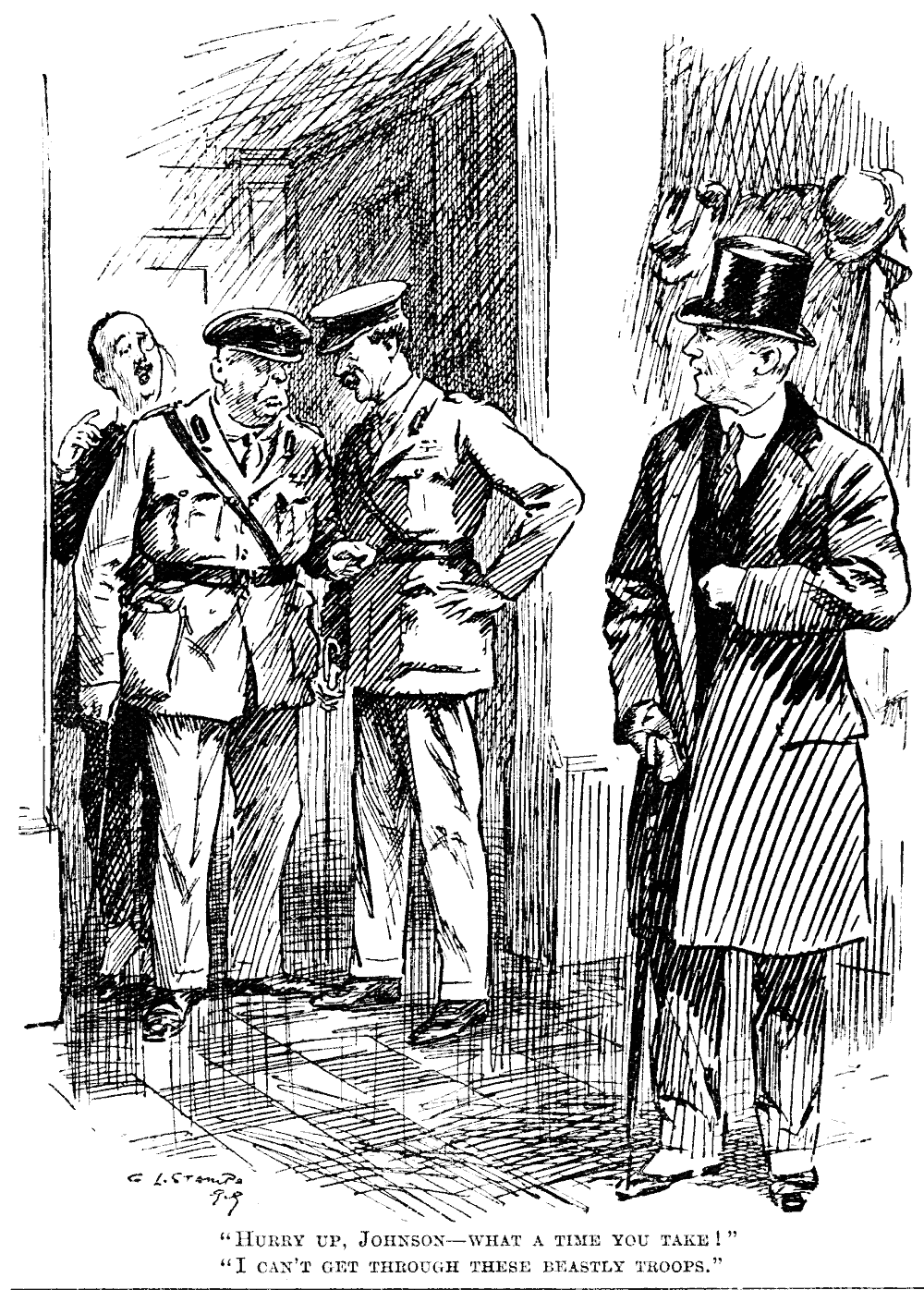 Owing to the strike of cabmen in Glasgow a number of people had to walk home on New Year's Eve. It is not said how the others got home, but we have made a guess.