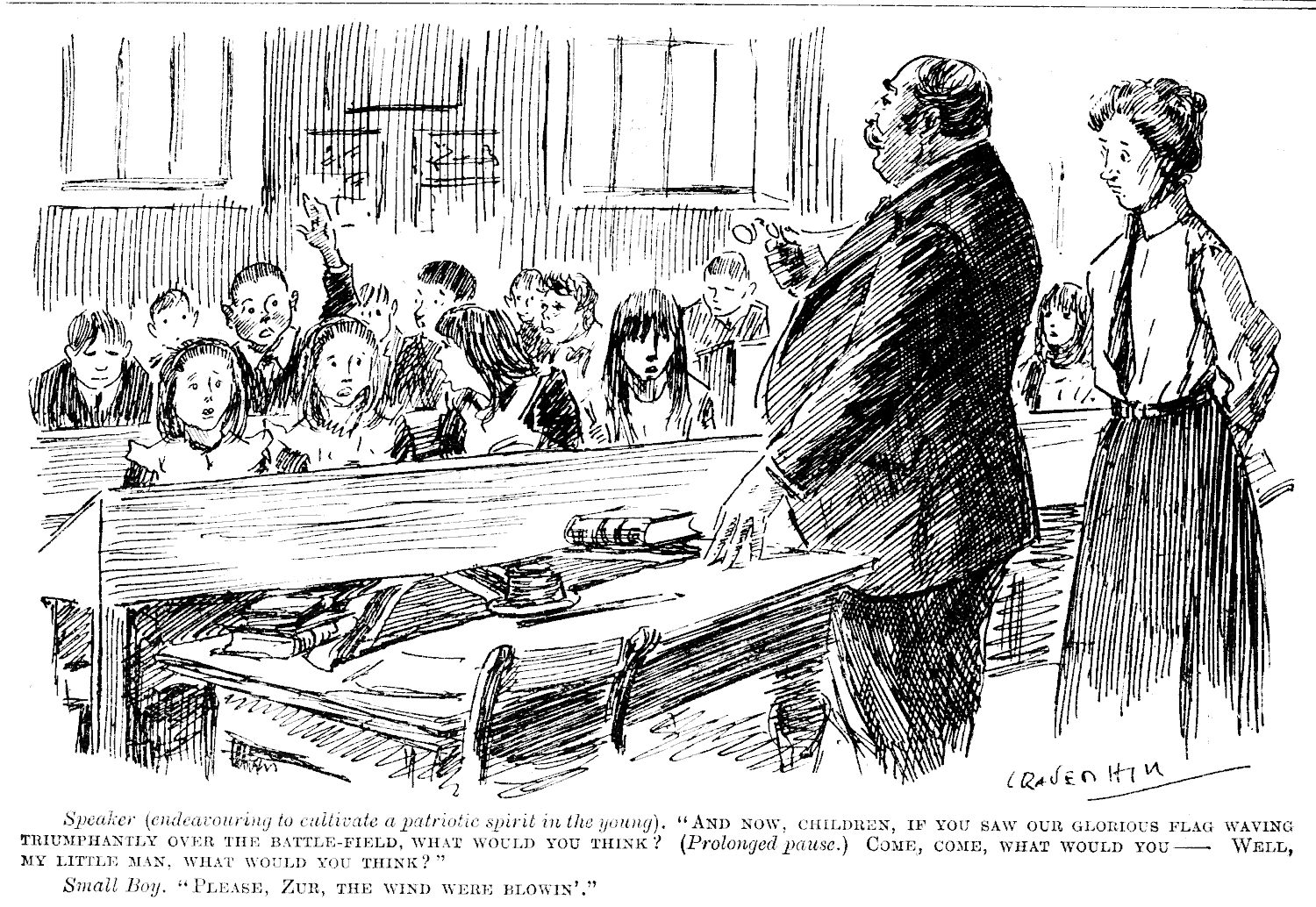 Sir,—In offering my services to you I may point out how happily my up-bringing and mental training have fitted me for a post on your staff. The child of an Archdeacon (who was also honorary chaplain to a rifle club), I was born in a house with earth-filled walls and brought up in intimate association with a large number of most intelligent animals. If desired I am prepared to relate anecdotes of the family bull-dog and a pet she-goat which will verify my description. I feel with you that England can only be saved by relying on a Free-Trading, Non-Socialist, Church Establishment. I loathe alike Mr. Asquith and Mr. Lloyd George, and think that the intellect of England, which blossoms so luxuriously in country rectories and deaneries, finds its best expression in Lord Hugh Cecil. As a specimen of my literary ability I enclose a middle article on "The Sense of Obligation in Tom-Cats."