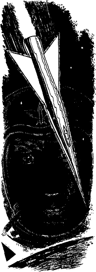 The Ship towered high, dominating the desert like a pinnacle of bright silver. Even silhouetted against the eastern sky, it sparkled and glistened. Impassive it stood, graceful, seeming to strain into the sky, anxious to be off and gone. The loading gantry was a dark, spidery framework beside The Ship, leaning against it, drawing strength from its sleek beauty.