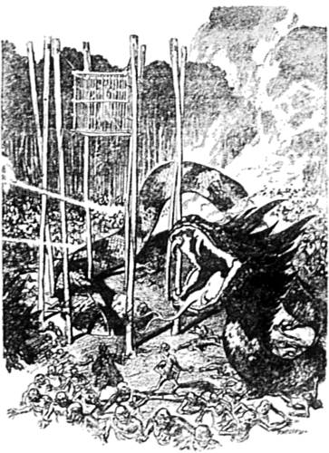 | Painted in Oils from a Scene in “The Ape-Men of Xlotli.” | ||