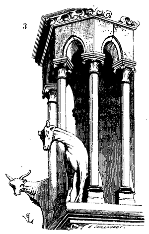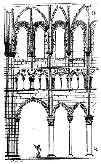 Après un séjour de deux ans en Italie nous fûmes plus vivement frappé encore de l'aspect de nos édifices français, de la sagesse et de la science qui ont présidé à leur exécution, de l'unité, de l'harmonie et de la méthode suivies dans leur construction comme dans leur parure. Déjà cependant des esprits distingués avaient ouvert la voie; éclairés par les travaux et l'admiration de nos voisins les Anglais, ils songeaient à classer les édifices par styles et par époques. On ne s'en tenait plus à des textes la plupart erronés, on admettait un classement archéologique basé sur l'observation des monuments eux-mêmes. Les premiers travaux de M. de Caumont faisaient ressortir des caractères bien tranchés entre les différentes époques de l'architecture française du nord. En 1831, M. Vitet adressait au ministre de l'Intérieur un rapport sur les monuments des départements de l'Oise, de l'Aisne, du Nord, de la Marne et du Pas-de-Calais, dans lequel l'élégant écrivain signalait à l'attention du gouvernement des trésors inconnus, bien qu'ils fussent à nos portes. Plus tard, M. Mérimée poursuivait les recherches si heureusement commencées par M. Vitet, et, parcourant toutes les anciennes provinces de France, sauvait de la ruine quantité d'édifices que personne alors ne songeait à regarder, et qui font aujourd'hui la richesse et l'orgueil des villes qui les possèdent. M. Didron expliquait les poëmes sculptés et peints qui couvrent nos cathédrales, et poursuivait à outrance le vandalisme partout où il voulait tenter quelque oeuvre de destruction. Mais, il faut le dire à notre honte, les artistes restaient en arrière, les architectes couraient en Italie ne commençant à ouvrir les yeux qu'à Gênes ou Florence; ils revenaient leurs portefeuilles remplis d'études faites sans critique et sans ordre, et se mettaient à l'oeuvre sans avoir mis les pieds dans un monument de leur pays.