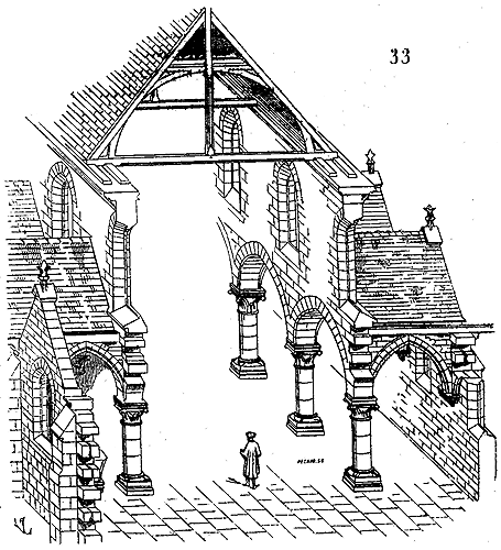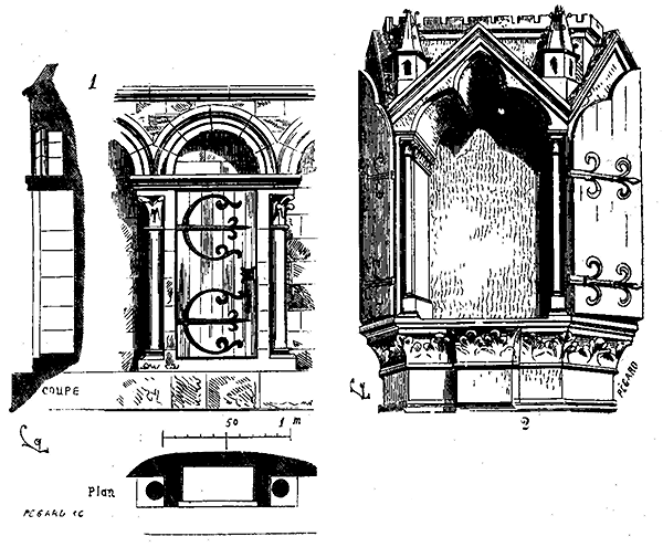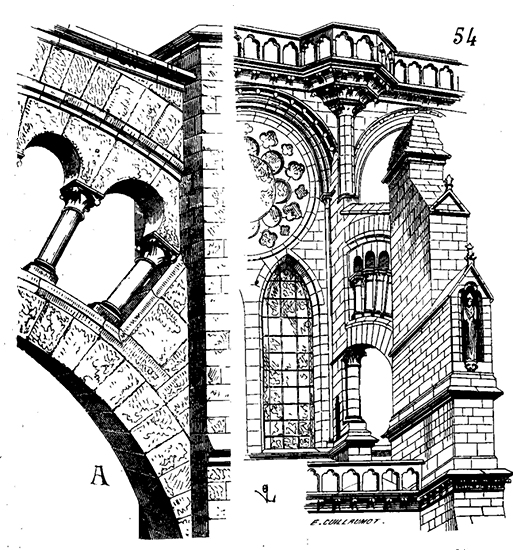 La commission des Monuments historiques instituée près le ministère de l'Intérieur commençait cependant à recruter un petit nombre d'artistes qu'elle chargeait d'étudier et de réparer quelques-uns de nos plus beaux monuments du moyen âge. C'est à cette impulsion donnée dès l'origine avec prudence, que nous devons la conservation des meilleurs exemples de notre architecture nationale, une heureuse révolution dans les études de l'architecture, d'avoir pu étudier pendant de longues années les édifices qui couvrent nos provinces, et réunir les éléments de ce livre que nous présentons aujourd'hui au public. Au milieu de difficultés sans cesse renaissantes, avec des ressources minimes, la commission des Monuments historiques a obtenu des résultats immenses; tout faible que soit cet hommage dans notre bouche, il y aurait de l'ingratitude à ne pas le lui rendre, car, en conservant nos édifices, elle a modifié le cours des études de l'architecture en France; en s'occupant du passé, elle a fondé dans l'avenir.