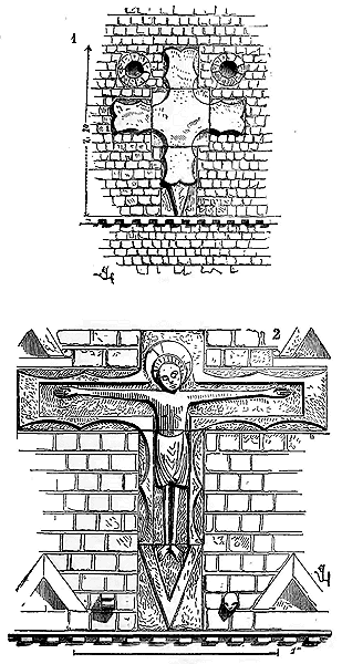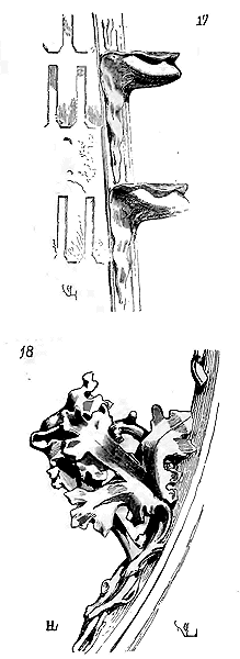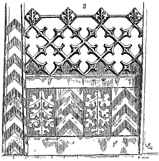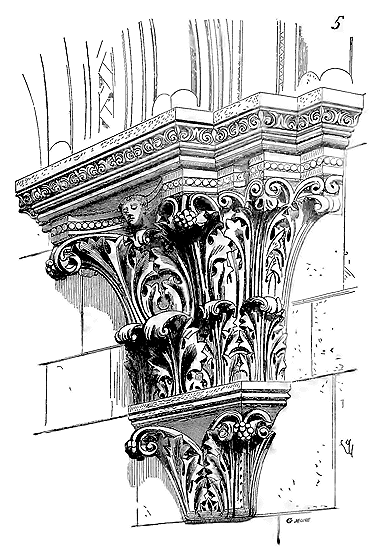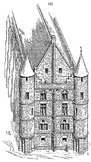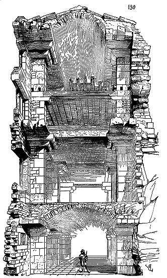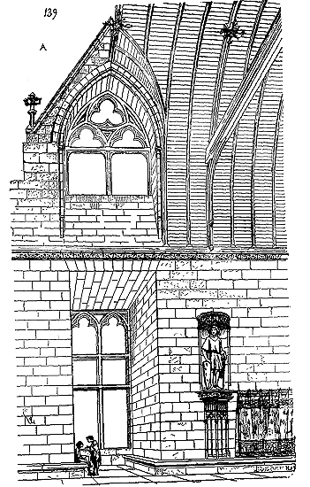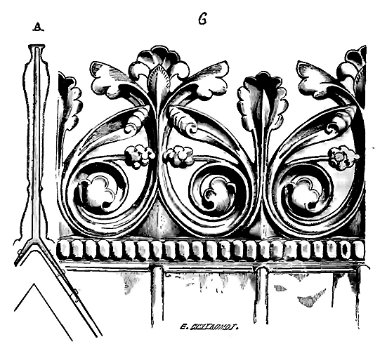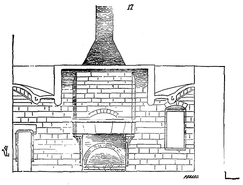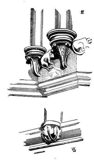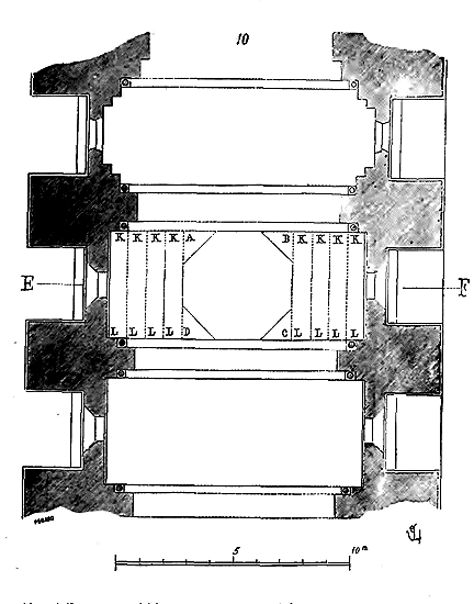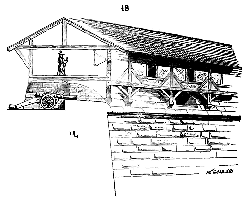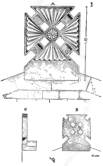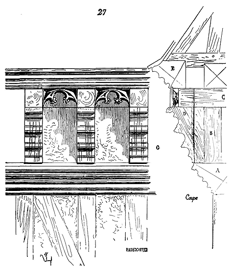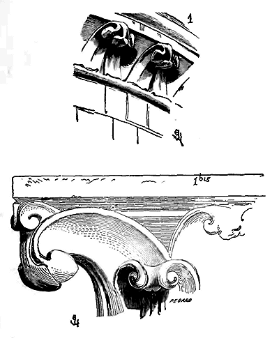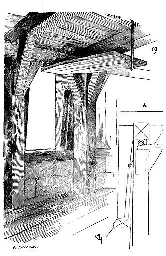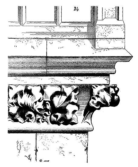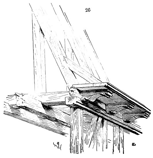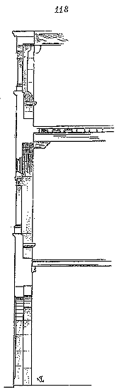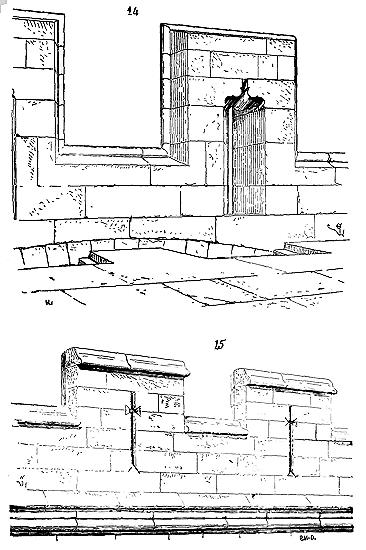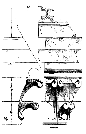 Notre fig. 2 donne une idée de ce genre de construction. Afin de relier les diverses parties des bâtisses, de chaîner les murs dans leur longueur, ils noyèrent dans les massifs, à différentes hauteurs, sous les appuis des fenêtres, au-dessous des corniches, des pièces de bois longitudinales, ainsi que nous l'avons figuré en A (voy. CHAÎNAGE). Dans ces constructions, la pierre est économisée autant que faire se peut; aucun morceau ne présente d'évidements: tous sont posés en besace; ce n'est qu'un revêtement exécuté d'ailleurs avec le plus grand soin; non-seulement les parements sont layés, mais aussi les lits et les joints, et ces pierres sont posées à cru sans mortier, comme l'appareil romain.