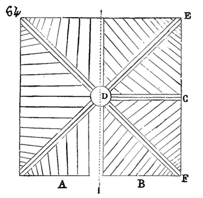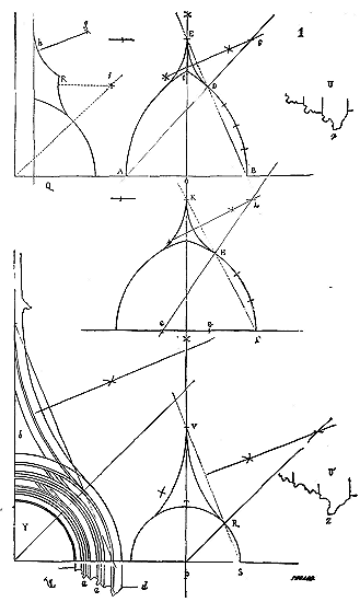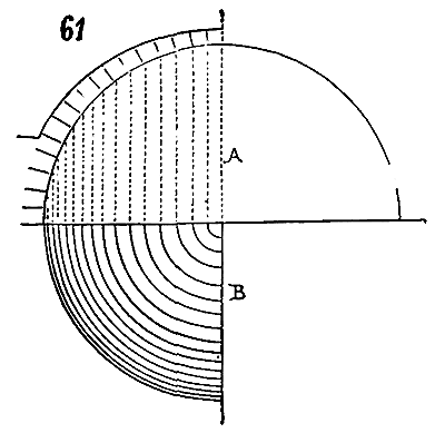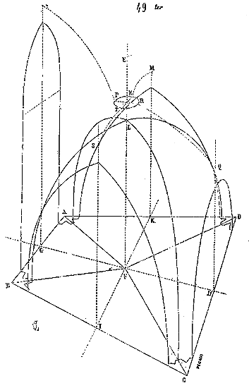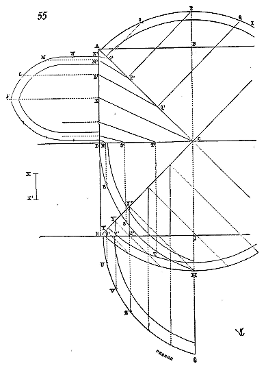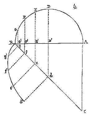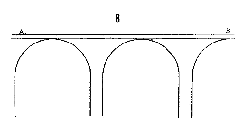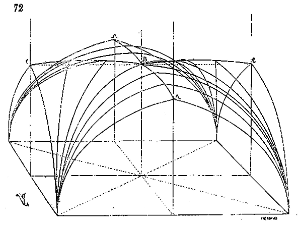 Afin de nous faire comprendre, soit (8) la coupe longitudinale d'une voûte d'arête romaine composée de travées; la ligne AB est horizontale: c'est la coupe du demi-cylindre longitudinal.