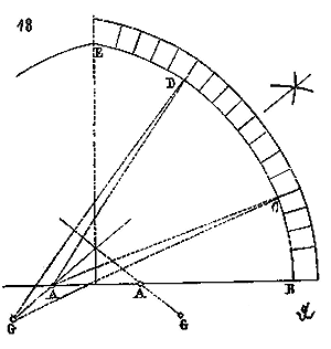 demi-cercle rabattu en un certain nombre de parties égales D E, E F, F