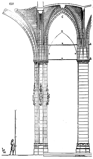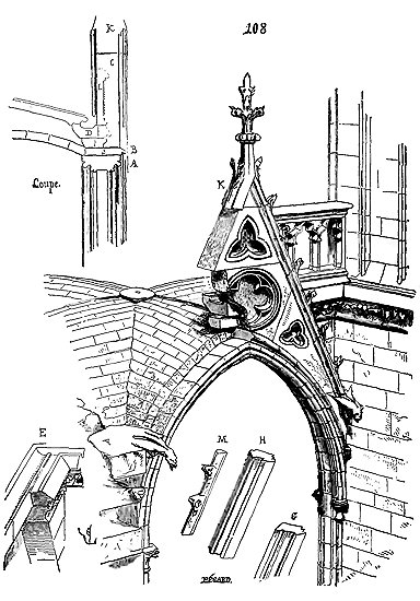 Dans les constructions élevées chez tous les peuples constructeurs, les déductions logiques se suivent avec une rigueur fatale. Un pas fait en avant ne peut jamais être le dernier; il faut toujours marcher: du moment qu'un principe est le résultat du raisonnement, il en devient bientôt l'esclave. Tel est l'esprit des peuples occidentaux; il perce dès que la société du moyen âge commence à se sentir et à s'organiser; il ne saurait s'arrêter, car le premier qui établit un principe sur un raisonnement ne peut dire à la raison: «Tu n'iras pas plus loin.» Les constructeurs, à l'ombre des cloîtres, reconnaissent ce principe dès le XIe siècle. Cent ans après, ils n'en étaient plus les maîtres. Évêques, moines, seigneurs, bourgeois, l'eussent-ils voulu, n'auraient pu empêcher l'architecture romane de produire l'architecture dite gothique: celle-ci n'était que la conséquence fatale de la première. Ceux qui veulent voir dans l'architecture gothique (toute laïque) autre chose que l'émancipation d'un peuple d'artistes et d'artisans auxquels on a appris à raisonner, qui raisonnent mieux que leurs maîtres et les entraînent malgré eux bien loin du but que tout d'abord ils voulaient atteindre, avec les forces qu'on a mises entre leurs mains; ceux qui croient que l'architecture gothique est une exception, une bizarrerie de l'esprit humain, n'en ont certes pas étudié le principe, qui n'est autre que l'application rigoureusement suivie du système inauguré par les constructeurs romans. Il nous sera aisé de le démontrer. Poursuivons.