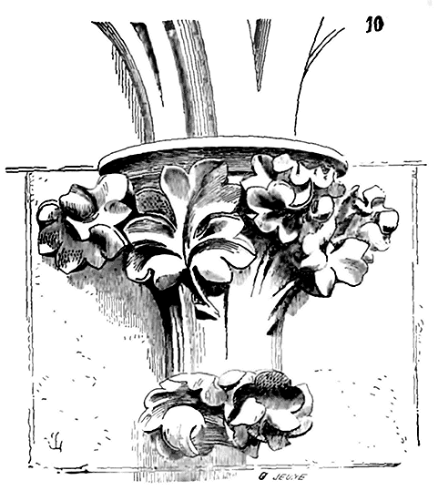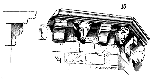 Ce genre de bâtisse est apparent dans les grandes constructions monastiques de Cluny, de Vézelay, de la Charité-sur-Loire (XIe et XIIe siècles). Les matériaux employés par les moines sont ceux qu'ils pouvaient se procurer dans le voisinage, dans des carrières dont ils étaient propriétaires. Et il faut reconnaître qu'ils les employèrent en raison de leurs qualités et de leurs défauts. Si ces matériaux présentaient des vices, si la pierre était gélive, ne pouvant s'en procurer d'autres, qu'au moyen de frais considérables, ils avaient le soin de la placer dans les conditions les moins désavantageuses, et, afin de préserver ces matériaux des atteintes de l'humidité et des effets de la gelée; ils cherchaient à les soustraire aux agents atmosphériques en les couvrant par des combles saillants, en les éloignant du sol, à l'extérieur, par des assises de pierres qu'ils allaient acheter dans des carrières plus éloignées.