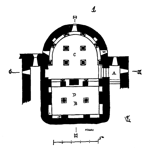 pénétrant à angle droit, sont formées par quatre arcs plein cintre