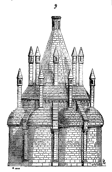 Ces essais, ces tâtonnements ne constituaient pas un art. Si, dans les détails de la construction, les architectes faisaient preuve d'un très-médiocre savoir, s'ils ne pouvaient qu'imiter fort mal les procédés des Romains, à plus forte raison, dans l'ensemble de leurs bâtisses, se trouvaient-ils sans cesse acculés à des difficultés qu'ils étaient hors d'état de résoudre: manquant de savoir, ne possédant que des traditions presque effacées, n'ayant ni ouvriers habiles, ni engins puissants, marchant à tâtons, ils durent faire et ils firent en effet des efforts inouïs pour élever des édifices d'une petite dimension, pour les rendre solides et surtout pour les voûter. C'est là où l'on reconnaît toujours, dans les monuments carlovingiens, l'insuffisance des constructeurs, où l'on peut constater leur embarras, leurs incertitudes, et souvent même ce découragement, produit de l'impuissance. De cette ignorance même des procédés antiques, et surtout des efforts constants des constructeurs du IXe au XIe siècle, il sortit un art de bâtir nouveau: résultat d'expériences malheureuses d'abord, mais qui, répétées avec persévérance et une suite non interrompue de perfectionnement, tracèrent une voie non encore frayée. Il ne fallut pas moins de trois siècles pour instruire ces barbares; ils purent cependant, après des efforts si lents, se flatter d'avoir ouvert aux constructeurs futurs une ère nouvelle qui n'avait pris que peu de chose aux arts de l'antiquité. Les nécessités impérieuses avec lesquelles ces premiers constructeurs se trouvèrent aux prises les obligèrent à chercher des ressources dans leurs propres observations plutôt que dans l'étude des monuments de l'antiquité qu'ils ne connaissaient que très-imparfaitement, et qui, dans la plupart des provinces des Gaules, n'existaient plus qu'à l'état de ruines. Prêts, d'ailleurs, à s'emparer des produits étrangers, ils les soumettaient à leurs procédés imparfaits, et, les transformant ainsi, ils les faisaient concourir vers un art unique dans lequel le raisonnement entrait plus que la tradition. Cette école était dure: ne s'appuyant qu'avec incertitude sur le passé, se trouvant en face des besoins d'une civilisation où tout était à créer, ne possédant que les éléments des sciences exactes, elle n'avait d'autre guide que la méthode expérimentale; mais cette méthode, si elle n'est pas la plus prompte, a du moins cet avantage d'élever des praticiens observateurs, soigneux de réunir tous les perfectionnements qui les peuvent aider.