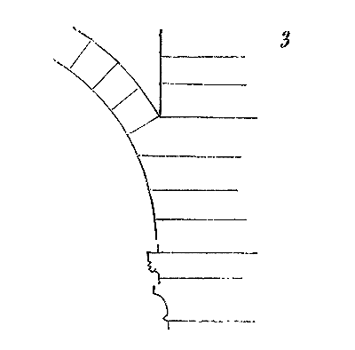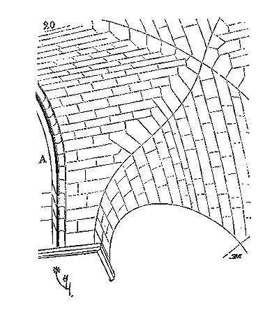 Les accidents qui s'étaient produits dans des édifices du XIIe siècle, à cause de l'absence ou de l'insuffisance des tas de charge, ne furent pas perdus pour les maîtres du XIIIe, siècle. Ceux-ci en vinrent bientôt, ainsi que nous le démontrons dans l'article CONSTRUCTION, à ne plus donner de coupes aux claveaux que quand leur extrados échappait à l'aplomb de la charge supérieure (fig. 3).
