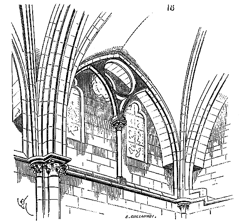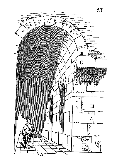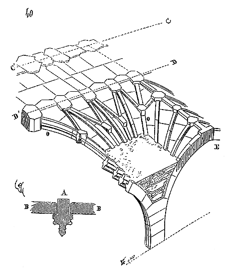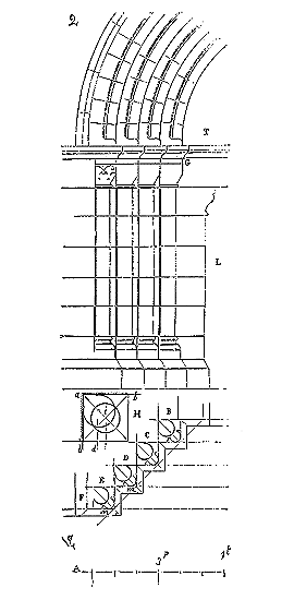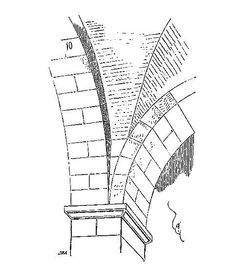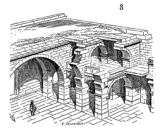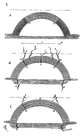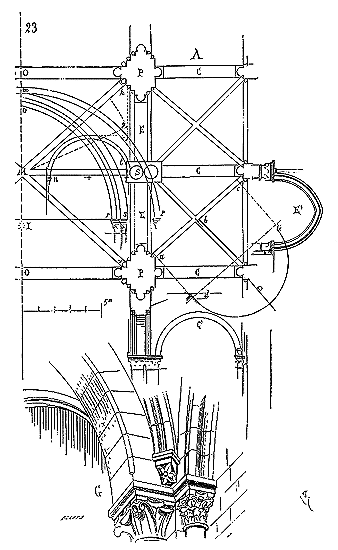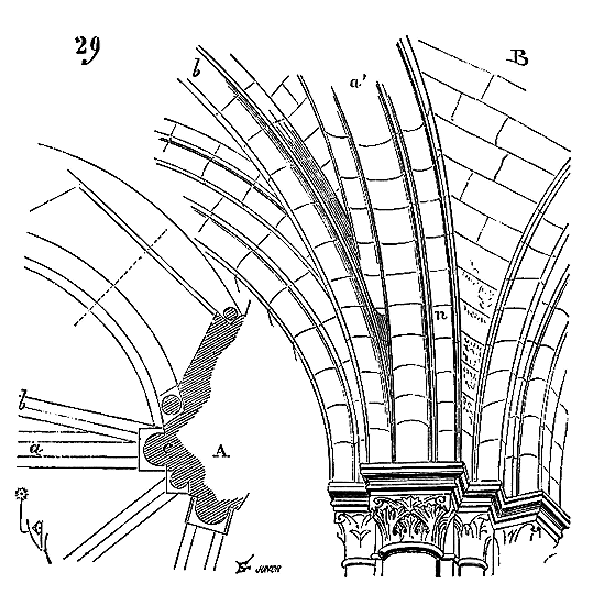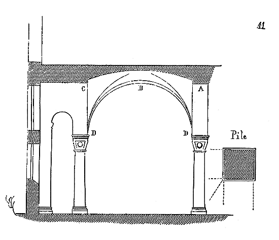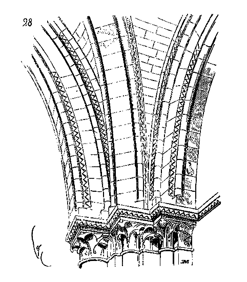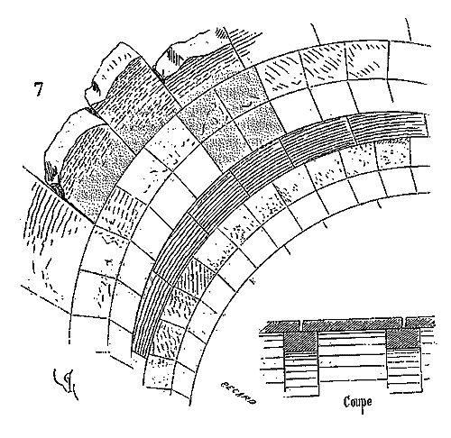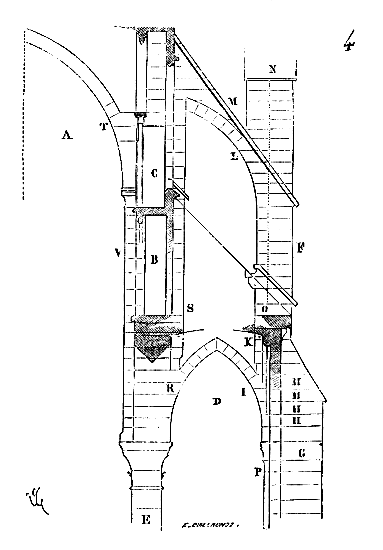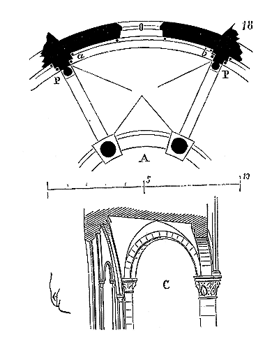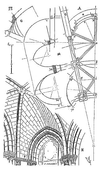 Ce principe une fois admis, ils en tirèrent des conséquences nombreuses; ils parvinrent ainsi souvent à neutraliser presque complétement des poussées d'arcs sur des murs, ou à diminuer considérablement le volume et le poids des maçonneries destinées à contre-buter ces poussées.