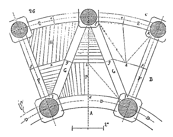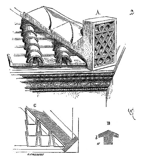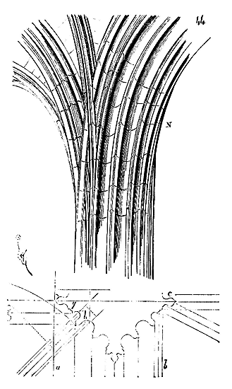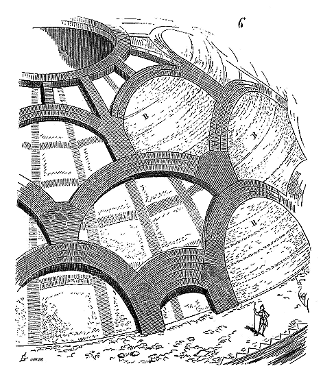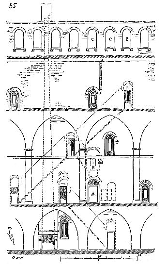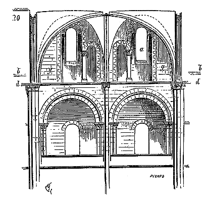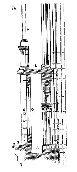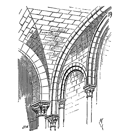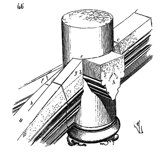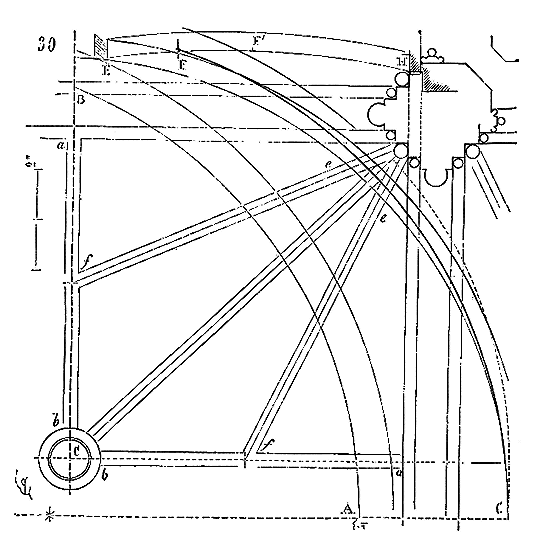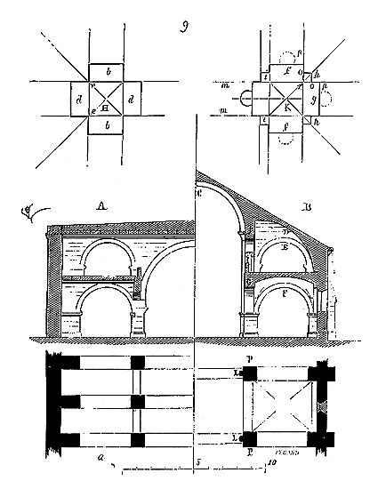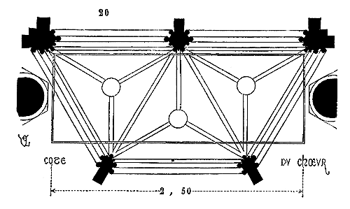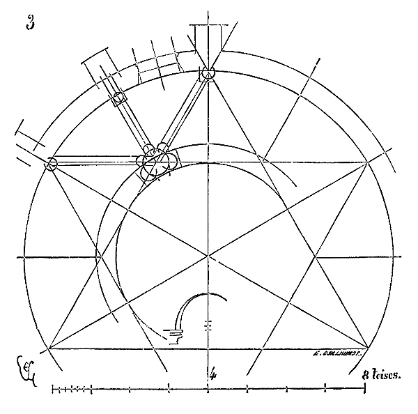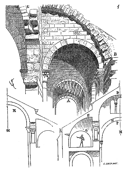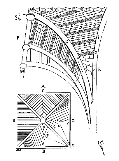 Ce principe une fois admis, ils en tirèrent des conséquences nombreuses; ils parvinrent ainsi souvent à neutraliser presque complétement des poussées d'arcs sur des murs, ou à diminuer considérablement le volume et le poids des maçonneries destinées à contre-buter ces poussées.