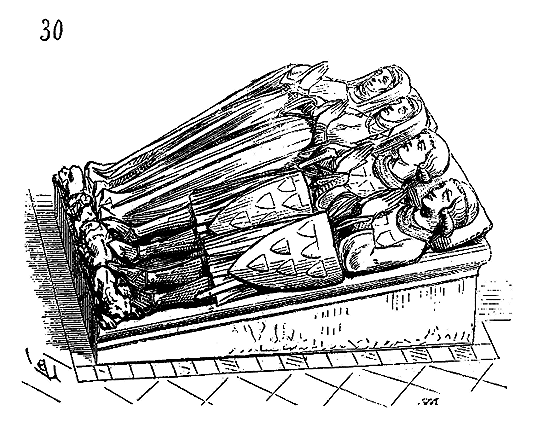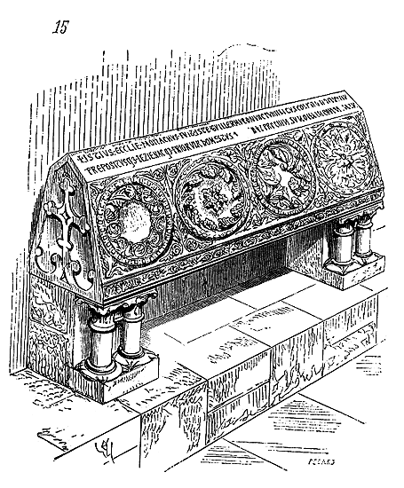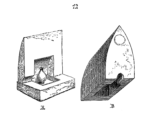 Les dispositions de ces chapelles exiguës, avec sanctuaire peu important, indiquent assez que les chevaliers du Christ ou du Temple n'admettaient pas le public pendant les cérémonies religieuses. Ces chapelles servaient aussi de lieu de séances pour les délibérations, qui, d'ordinaire, se tenaient la nuit. D'ailleurs d'une extrême sobriété d'ornementation, ces petits monuments du XIIe siècle se ressentent de l'influence de l'abbé de Citeaux, qui avait rédigé les statuts de l'ordre. Cette simplicité se retrouve sur les dalles tumulaires que l'on rencontre encore dans ces édifices; dépourvues d'inscriptions, elles ne montrent que la croix de l'ordre, une épée, un triangle ou quelques attributs, très-rarement des écussons armoyés 12. Dans la chapelle de Laon, trois de ces tombes existent à l'entrée du sanctuaire; elles sont ornées de la croix pattée en gravure.