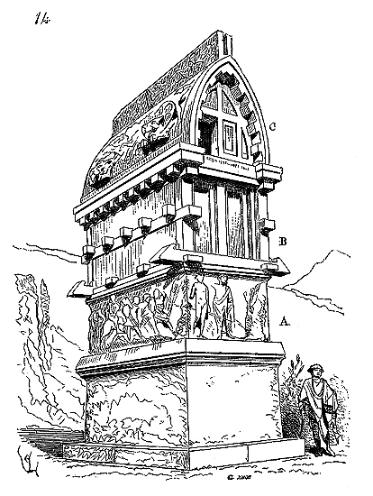 Quant aux édifices romains en pierre d'appareil, il en existe très-peu qui aient été complétement ravalés. Le Colisée, la porte Majeure à Rome, les arènes de Nîmes et d'Arles, celles de Pola, ne présentent que des ravalements incomplets. Il est évident que, la bâtisse achevée, on s'empressait d'enlever les échafaudages, et l'on se souciait peu de terminer les ravalements, ou bien ils étaient faits avec une négligence et une hâte telles, que ces ravalements conservaient une apparence grossière.