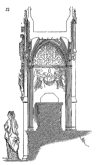 Dans des contrées où l'on n'avait que des pierres très-dures, telles que certains calcaires jurassiques, le grès, la lave et même le granit, on continue à employer le poinçon, le ciseau et le taillant droit. La bretture, et à plus forte raison la ripe, n'avaient pas assez de puissance pour entamer ces matières. Tous les profils étaient dégagés au ciseau et terminés au taillant droit très-étroit, employé longitudinalement. On ne voit de traces de l'outil appelé boucharde que dans certains monuments du Midi bâtis de grès dur, comme à Carcassonne, par exemple, et cet outil n'apparaît-il que fort tard, vers la fin du XVe siècle. Encore n'est-il pas bien certain qu'il fût fabriqué comme celui que l'on emploie trop souvent aujourd'hui. C'était plutôt une sorte de grosse bretture à dents obtuses, au lieu d'être coupantes. Jusqu'à la fin du XVe siècle, la taille de la pierre, en France, est faite avec une grande perfection, souvent avec une intelligence complète de la forme et de l'effet à obtenir. Les parements unis ne sont jamais traités comme les moulures. Le grain de la bretture, et plus tard de la grosse ripe, apparaît sur ces parements, tandis qu'il est à peine visible sur les parties profilées. Des détails polis viennent encore donner de la variété et du précieux à ces tailles.