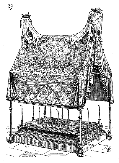 L'établissement des tabernacles sur les autels ne date que du dernier siècle. Les hosties étaient déposées, jusqu'au XVIIe siècle, dans des édicules placés à côté de l'autel, ou dans une suspension (voyez AUTEL, et dans le Dictionnaire du mobilier français, l'article TABERNACLE). Ces édicules placés près de l'autel étaient de bois, de pierre ou de métal, avec lanterne pour loger une lampe. On voit encore quelques-uns de ces tabernacles, datant du XVIe siècle, dans des églises de Belgique. Souvent ces réserves de la sainte Eucharistie étaient mobiles, et n'étaient placées près de l'autel que pendant le service divin.