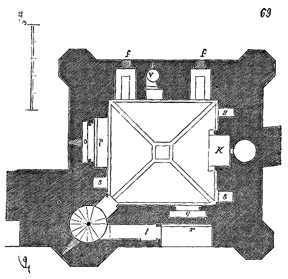 La chapelle de la commanderie de Laon, qui date du milieu du XIIe siècle environ, est un octogone dont les côtés, intérieurement, ont neuf pieds.