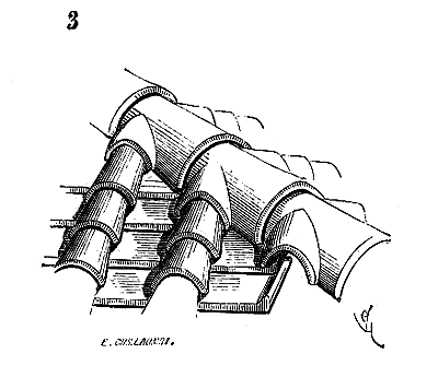 Il suffit d'examiner les nombreux débris que nous possédons de l'époque gallo-romaine des bas temps, pour constater l'infériorité de la taille des parements, tandis que les lits et joints sont dressés avec une précision parfaite; si bien que les blocs de pierre, même dans des monuments d'une très-basse époque, sont exactement jointifs. Cette négligence des parements tenait donc au peu d'importance que les Romains attachaient à la forme, et non à l'inhabileté des ouvriers. Les tailles préparatoires sont faites, dans les monuments gallo-romains, au moyen d'une ciselure sur l'arête; le nu vu de la pierre conservant la taille de la carrière, faite à l'aide d'un taillant droit peu large. Quant aux lits et joints, ils sont taillés au moyen d'une ciselure très-fine sur les arêtes bien dégauchies, le milieu étant parfaitement aplani à l'aide d'un taillant droit large et fin. Quelquefois ces lits et joints sont moulinés, probablement à l'aide d'une pierre dure et rugueuse, comme de la meulière, par exemple, ou de la lave. L'emploi de la lave, pour mouliner les lits et joints, parait avoir été en usage dans les Gaules, car là où il existe des restes de constructions gallo-romaines, nous avons fréquemment trouvé des morceaux de lave, bien que les contrées où existent ces restes soient fort éloignées des pays volcaniques.