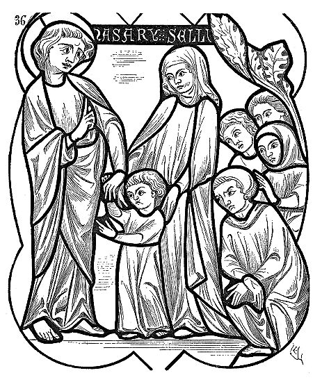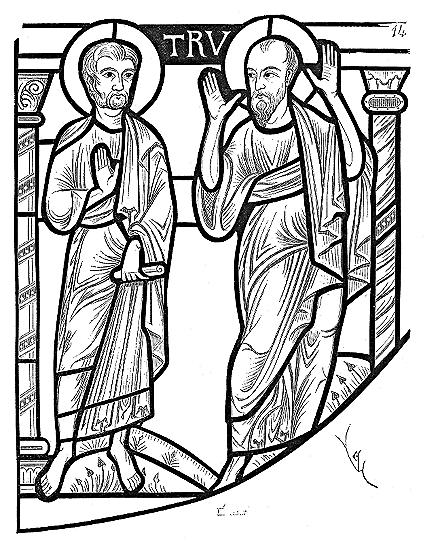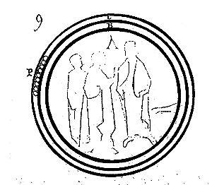 Note 2: (retour) Ces neuf chevaliers sont: Hugues de Payens, Godefroy de Saint-Omer, André de Montbard, Gundomar, Godefroy, Roral, Geoffroy Bisol, Payen de Montdésir, Archambaud de Saint-Aignan, ou, suivant Lejeune, Hugues, comte de Champagne, fondateur de Clairvaux.