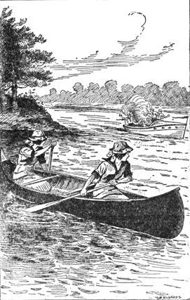 As the twins swept on in their canoe, and turned Boulder Head, hiding the place where they had seen the bewhiskered poll of the individual whom Dora had called the lone pirate, she said:
