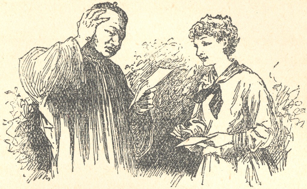 Elsie Howard, the invalid friend of the girls, was as dear to them as they were to each other. She kept the secrets of the “firm”; mourned over their griefs and smiled over their joys; was proud of their talents and tenderly blind to their faults. The little wicker rocking-chair by the bedside was often made a sort of confessional, at which she presided, the tenderest and most sympathetic little priestess in the universe; and every afternoon the piazza, with its lattice of green vines, served as a mimic throne-room, where she was wont to hold high court, surrounded by her devoted subjects. Here Geoffrey Strong used often to read to the assembled company David Copperfield, Alice in Wonderland, or snatches from the magazines, while Jack Howard lazily stretched himself under the orange-trees and braided lariats, a favourite occupation with California boys. About four o’clock Philip Noble would ride up from his father’s fruit ranch, some three miles out on the San Marcos road, and, hitching his little sorrel mare Chispa at the gate, stay an hour before going to the post-office.