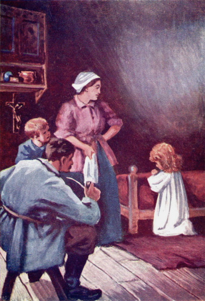 "Nay, Hans," she said; "some evil has befallen him. He never tarries so late. Thy father is not one to turn aside to his mates' houses and gossip away his time as others do. It is always for home and children that he sets out when his work is done. No, Hans; I know the path to the place where he works, and I can follow it even in the dark. Stay here and watch by the cradle of the little Annchen, whilst I go and see if I can find thy father."