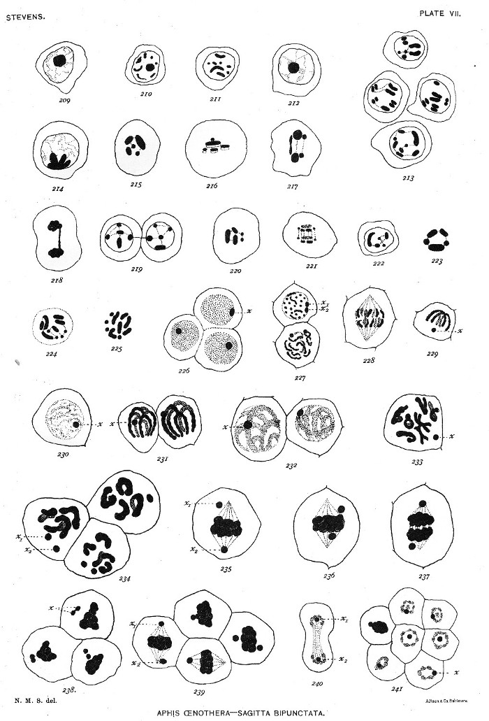 A brief account of a chromatin element resembling the accessory chromosome in Sagitta has been added for comparison. The spermatogenesis of each form will be described in detail, and a general discussion of the results and their relation to the accessory chromosome and sex determination will follow. The spermatogenesis of the aphid has been included in another paper, but a summary of results and a few figures will be given here for reference in the general discussion.