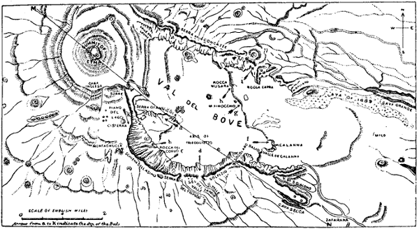 Sir Charles Lyell visited Etna in 1824, 1857, and again in 1858. He embodied his researches in a paper presented to the Royal Society in 1859, and in a lengthy chapter in the Principles of Geology. His investigations have added much to our knowledge of the formation and geological characteristics of the mountain, especially of that part of it called the Val del Bove.