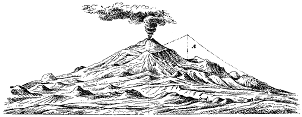 Sir William Hamilton's Campi Phlegræi relates mainly to Vesuvius and the surrounding neighbourhood; but one of the letters "addressed to the Secretary of the Royal Society on October 17th, 1769," describes an ascent of Etna. Hamilton ascended on June 24th with the Canon Recupero and other companions; the few observations of any value which he made have been alluded to elsewhere under the head of the special subjects to which they refer. The illustrations of the Campi Phlegræi, specially the original water-colours which are contained in one of the British Museum copies, are magnificent, and convey a better idea of volcanic phenomena than any amount of simple reading. From them we can well realise the opening of a long rift extending down the sides of a mountain during its eruption, and the formation of subsidiary craters along the line of fire thus opened. Various volcanic products are also admirably painted. In the picture of Etna, however, which was drawn by Antonio Fabris, the artist has scarcely been more successful than his predecessors, and the slope of the sides of the mountain has been greatly exaggerated.