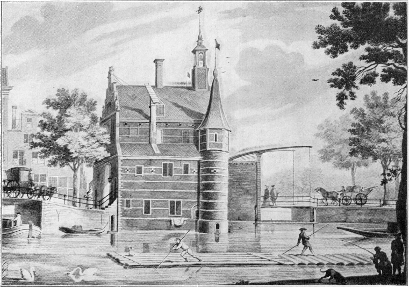 Maasland echter kon nu niet meer overstroomd worden, hoewel we ons niet moeten voorstellen, dat de bewoners er erg droog gewoond zullen hebben. Hadden ze van het buitenwater thans geen last, van het binnenwater zooveel te meer. Dit moest men zien te loozen op de Rotte en de Schie en daar men nog geen windwatermolens of stoomgemalen kende, moest men zich behelpen met handmolens, paardenmolens, ja zelfs met hoosvaten.
